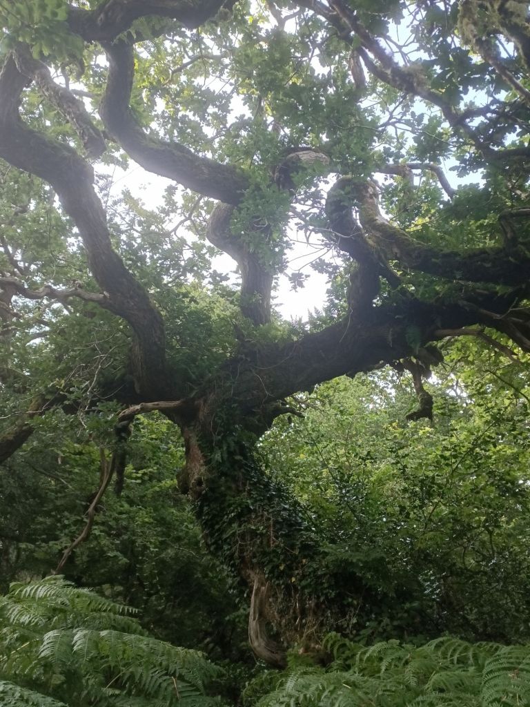 Being in this rainforest was a sensorial delight: the thick velvety moss-clothed branches with a myriad of epiphytes growing on, around, down and up the embracing arms. There was even a rowan tree growing out of a nook of a branch of oak which Merlin endearingly named “Mother Oak”.