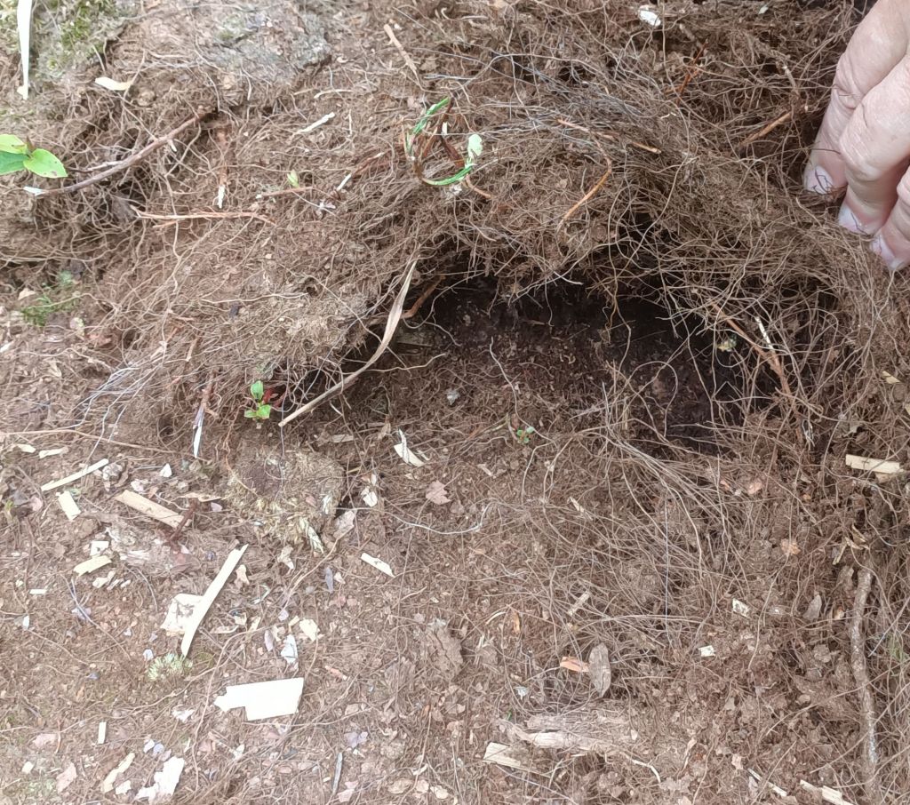 Our walk continued, and we sensed the air changing: becoming more humid, heavy and bringing different smells. The soil became spongy underfoot and, on investigation, visibly comprised a vast interconnected mycorrhizal network, which resembled a thick matted carpet.